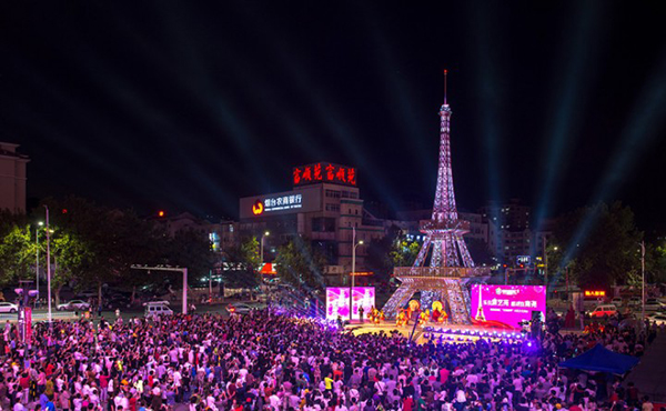新都匯廣場西北側(cè)建有“埃菲爾鐵塔”大舞臺,南堯集團(tuán)投資500萬元打造,按照巴黎埃菲爾鐵塔原樣1:10比例設(shè)計制作而成,塔身高達(dá)29米,相當(dāng)于10層樓高,并配備燈光秀。“埃菲爾鐵塔”一經(jīng)亮相,就吸引了大批市民前來觀賞拍照,仿佛帶人穿梭去法國巴黎,感受一場異域風(fēng)情的浪漫感。底部舞臺部分面積約為400平米,與周邊休閑座椅、綠植呼應(yīng),構(gòu)成1000平米的具有風(fēng)格的景觀。有文藝演出的時候,這里就是社區(qū)文化百姓大舞臺,也是商品的展示平臺;平日閑暇時間也是居民娛樂休閑的一個非常好的去處。南堯集團(tuán)專門圍繞“埃菲爾鐵塔”建設(shè)百姓大舞臺,形成了一套社區(qū)文化演出模式,為老百姓免費(fèi)送上精神文化大餐。