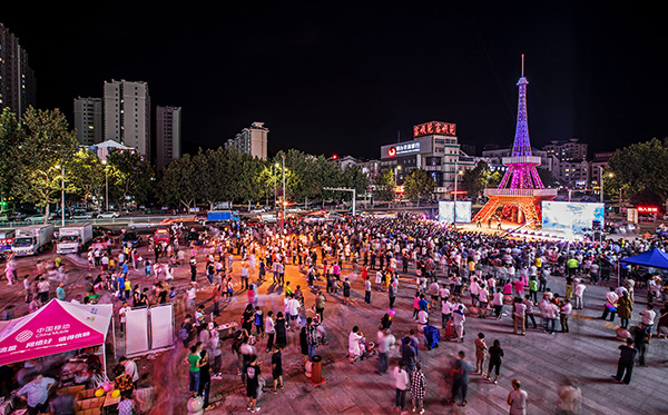 新都匯廣場西北側建有“埃菲爾鐵塔”大舞臺,南堯集團投資500萬元打造,按照巴黎埃菲爾鐵塔原樣1:10比例設計制作而成,塔身高達29米,相當于10層樓高,并配備燈光秀。“埃菲爾鐵塔”一經亮相,就吸引了大批市民前來觀賞拍照,仿佛帶人穿梭去法國巴黎,感受一場異域風情的浪漫感。底部舞臺部分面積約為400平米,與周邊休閑座椅、綠植呼應,構成1000平米的具有風格的景觀。有文藝演出的時候,這里就是社區文化百姓大舞臺,也是商品的展示平臺;平日閑暇時間也是居民娛樂休閑的一個非常好的去處。南堯集團專門圍繞“埃菲爾鐵塔”建設百姓大舞臺,形成了一套社區文化演出模式,為老百姓免費送上精神文化大餐。